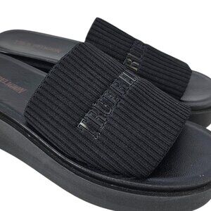 True Religion Womens Jann Slip On Mules, Black, Fabric, Platform, Size 8