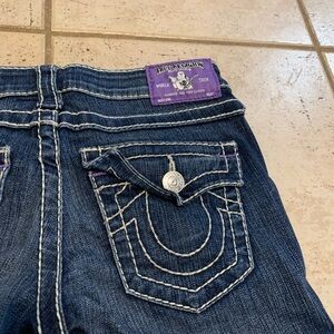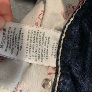 * Features: Iconic True Religion horseshoe stitching on back flap pockets, button closure, zip fly.