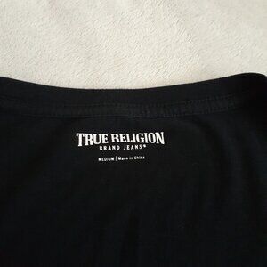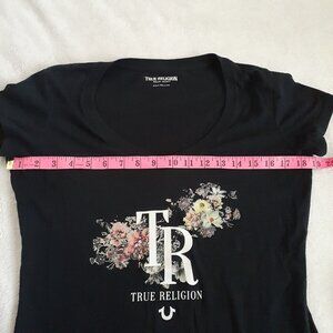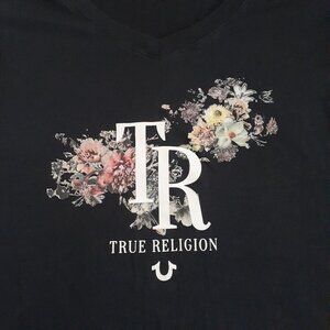 True Religion Women's Size Medium Black Bouquet Short Sleeve V Neck T-Shirt