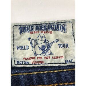 True Religion World Tour Legging Blue Jeans Womens 30 Thick Stitch Multi Color