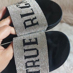 Check out these True Religions Women's Black Meyer Bling Slides Sandals in very great pre-owned condition, with minor wear on the outsole, the insole and upper still in new shape