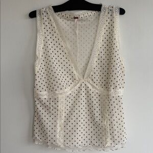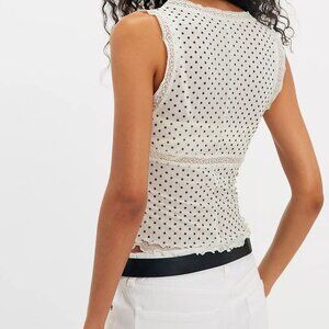 Forever flattering, this femme tank features a fitted silhouette, layered mesh fabrication, and delicate lace trim for a vintage-inspired touch. Color is Ivory Combo. Size M. Sooo cute! 🥰