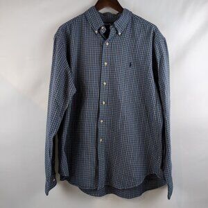 True Vintage Ralph Lauren Men's Blue Plaid Long Sleeve Button Up Shirt, X-Large