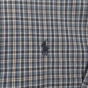 True Vintage Ralph Lauren Men's Blue Plaid Long Sleeve Button Up Shirt Navy Pony, X-Large