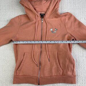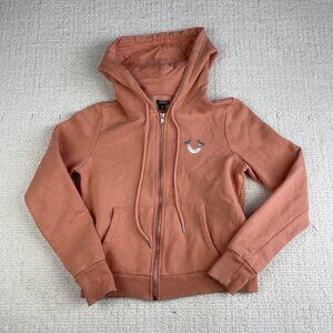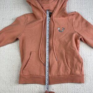 True religion Womens Sz XS Foil Silver Logo Buddha Full Zip Hoodie Pink