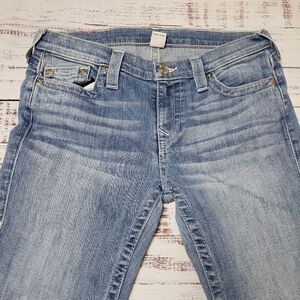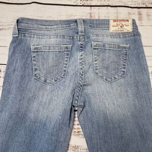 True religion slim straight jeans. Light Wash. Small faint mark on the back of one leg as pictured. Size 30, measurements in the photos.