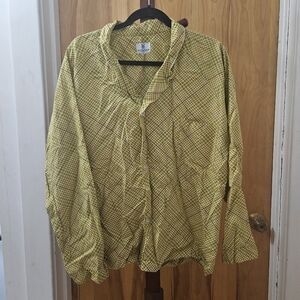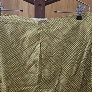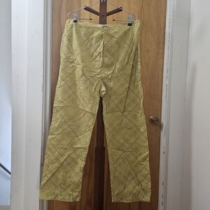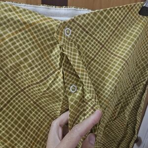 For lovers of true vintage and all the cool details that come with...glorious (men's?) pajamas. No material tag, feels like crisp cotton. Features half-elastic waistband with snaps closure, piping at the collar, and the baddest olive green/brown/cream plaid.