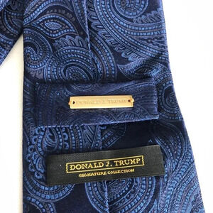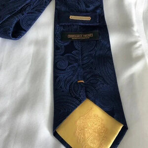 Like new, worn only a couple times. Deep Royal blue colour w/ paisley pattern. The polished design of our Trump Signature Collection Silk Necktie delivers the perfect compliment to formal attire. Its elegantly woven pattern design adds style and texture, making it a head turning accessory for a day in the office or a night on the town.