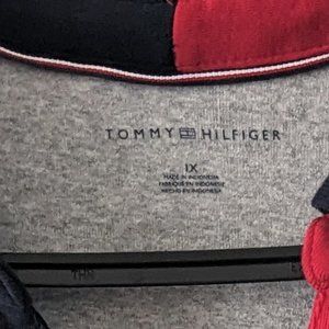 EUC , casual & comfy , throw on & go grey with Red & blue trim & zipper front