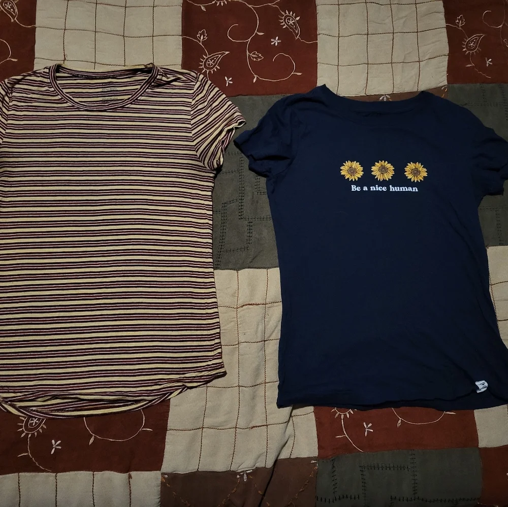 one stripped, one navy with flowers