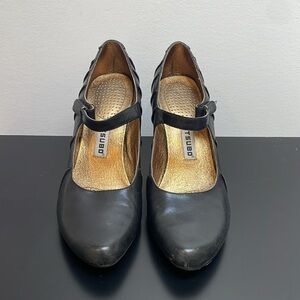 Tsubo Anush Pumps heels US8.5 black leather Velcro strap Mary Jane closed toe
