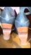 Elegant black wood wedge shoes by Tsubo. Size 9