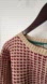 Tsumori Chisato women’s knit sweater in size 2 which fits like a small. Features an allover woven pattern in cream and burgundy with a solid teal green hem and cuffs. Crew neckline. Long sleeves. Rugged knit with nice weight and structure. Gently used.