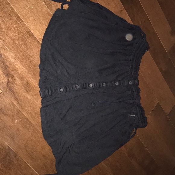 Flowy black off the shoulder button up tube top with jaw string on each side