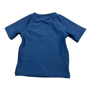 Adorable blue short sleeve rashguard swim shirt with an under the sea theme.