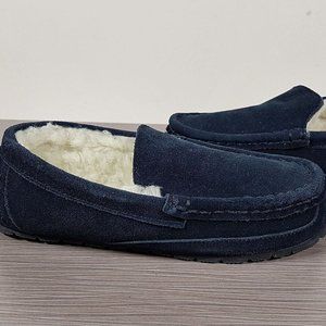 A moc-stitched slipper is shaped from buttery suede and set on a rubber sole, while plush faux-shearling lining ensures all-day warmth for little feet.