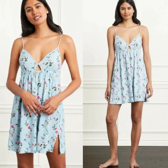 Tuckernuck Hill House The Aurora Sleep Dress in Pond Floral and Women's Size XS. 100% organic cotton. Has adjustable straps. Cut out detail. Front slit. Machine washable. Made in Portugal. Great pre-owned condition. Please review all photos.