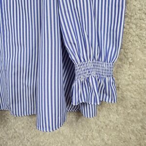 Tuckernuck Top Womens XS Blue Stripe V-Neck Smocked Wrists Lightweight