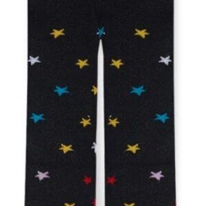 This charming girls' dress features a playful design perfect for any occasion. The top is adorned with colorful star patterns on a dark background, adding a touch of whimsy. The skirt transitions into a vibrant, multi-colored pattern, enhancing its lively appeal. Accompanied by matching tights, also decorated with stars, this set ensures a cohesive and fun outfit. Ideal for young fashionistas, this dress is both stylish and comfortable.