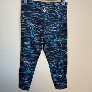 Tuff Athletics Blue/Black Abstract Psychedelic Yoga Cropped Leggings Size Small