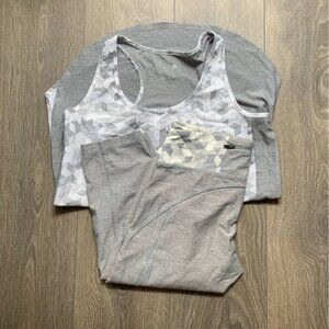 Tuff Athletics Geometric Gray Sleeveless Top & Capri Crop Leggings Set bundle of 2 pieces