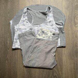 Tuff Athletics Geometric Gray Sleeveless Top & Capri Crop Leggings Set bundle of 2 pieces