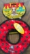 Durable Tuffy dog toy red, with black and white paw prints. Perfect for playful pets.