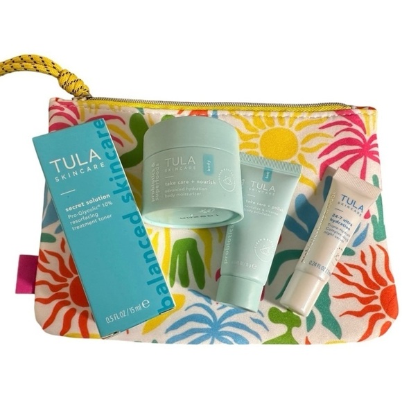 Set Contains: Secret Solution Treatment Toner, Body Moisturizer, Body Exfoliation, Night Serum & Makeup Bag