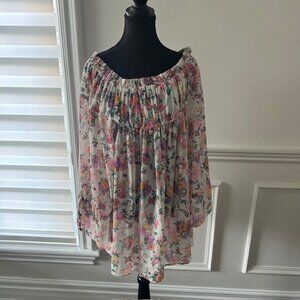 Tularosa achieves ultra-cool beach babe status with the Brogan Mini Dress. Feminine florals thrive against the sheer composition that is shaped by an off-the-shoulder neckline and ruffle sleeves.