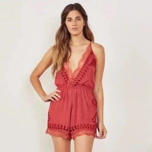 Tularosa Charmer Romper Eyelet Lace Embroidered Silky Sleeveless Shorts Jumpsuit
