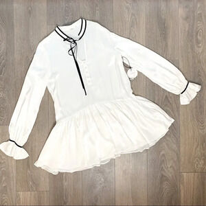 Tularosa Revolve Malia Mini Dress Shift Ivory Neck Tie Ruffle flare Sleeve XS