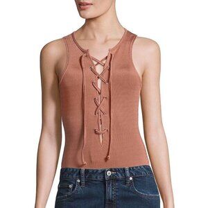 New Revolve Tularosa Pink Blush Nile Lace Up Bodysuit.