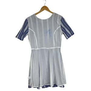Tularosa women's Blue & White Striped Short Sleeve Fit And Flare Iris Dress US M