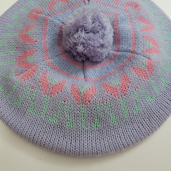 Super cute pastel lilac purple soft knit beret with a fairisle style tulip flowers pattern around it. New without tags. Stretchy fit.