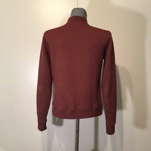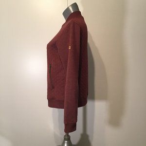 Features: Quilted bomber jacket, zipper hand pockets, ribbed hem, cuffs, and neck.