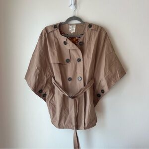 Tulle Tan Cape Jacket Women’s Small Khaki Cotton Double Breasted Y2K Mod