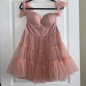 Tulle mini dress off the shoulder corset waist sweetheart neckline In Blush XL