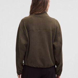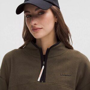 Fleece, you're up. When the temperature drops, choose this soft, stretchy half-zip jacket and stay cozy on the trails. Color is Olive Brown/Black/Light Ivory. Size XS.