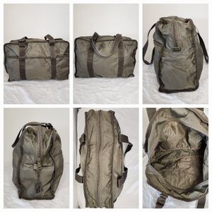 Safety padding for carrying laptop, removable buttoned shoulder pad, so many zippers and hidden pockets (14 plus a pen slot total), 4" Drop Handles, key leash, Great Condition, light wear to leather, "JRS" monogrammed, ($791US), Limited Edition Moss Green travel toiletry messenger bag included ($300 value), Great Condition as well, a few small marks and some fading to the handles. Hight-10, Width-16, Depth-4"