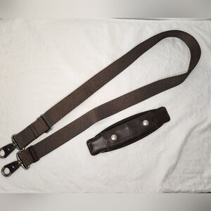 Safety padding for carrying laptop, removable buttoned shoulder pad, so many zippers and hidden pockets (14 plus a pen slot total), 4" Drop Handles, key leash, Great Condition, light wear to leather, "JRS" monogrammed, ($791US), Limited Edition Moss Green travel toiletry messenger bag included ($300 value), Great Condition as well, a few small marks and some fading to the handles. Hight-10, Width-16, Depth-4"