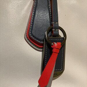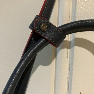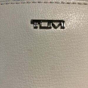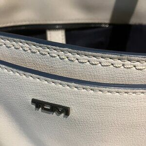 Tumi Stanton White Leather Work Tote Purse w Laptop Compartment/ Navy Red Detail