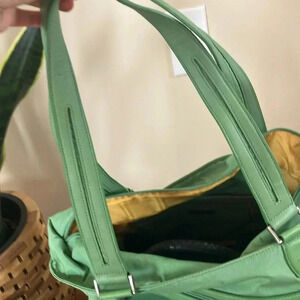 Tumi green nylon leather trim shoulder bag