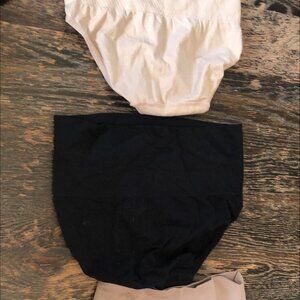 Tummy control underwear that are seamless comes in taupe, beige, and black. Black pair was worn 1 time and the others none. All 3 have been washed
