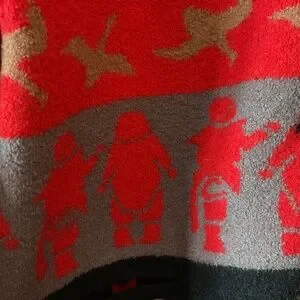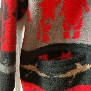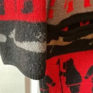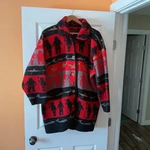 Women’s tundra very vibrant colours always kept in a sleeve when not in use. No damage EUC . Purchased in Banff roughly 10 years ago. Tag says Medium but fits oversized. Fits 24 pit to pit, 33 inches long. Has 2 big pockets . Not wearing it to pretty to leave it in closet. The pattern is just gorgeous never seen another like it. 100% wool .