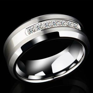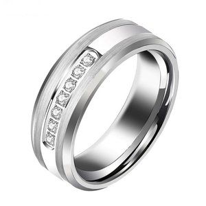 Tungsten Carbide Wedding Band With Clear Zircon Ring 8mm Size 9,10,11,12
