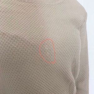There is a small stain on the front, but it’s hardly noticeable. I’ve photographed it and circled it to highlight it for you!