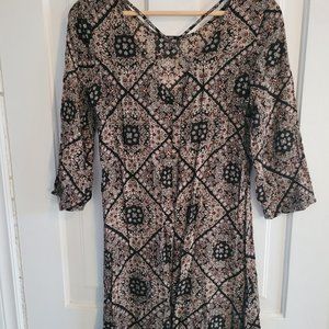 Tunic dress 3/4 Sleeves Black with geometric pattern Small Worn once