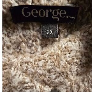 Tunic Style Short Sleeve Sweater Beige/Cream Knitted Plus Size 2X