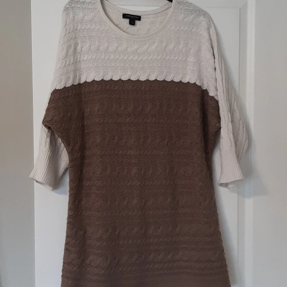 Banana Republic ladies tunic cable knit sweater. Taupe/beige colour, size XL. 3/4 sleeve. does have slight pulls on side as in photo.
