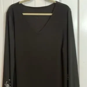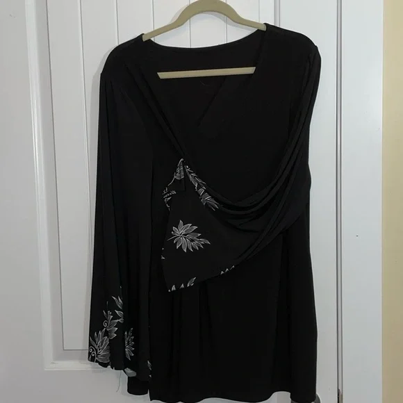 This tunic is wash and wear. It matches the pants and jacket on my page. All three carry the same pattern and easy care fabric. Pit to pit 25”, length from shoulder 31.5”